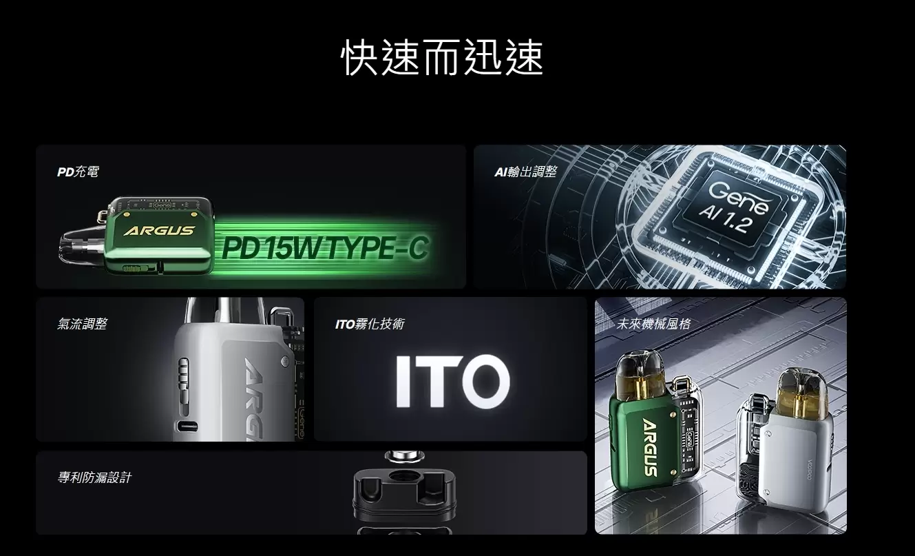 VOOPOO ARGUS P1 以優雅外觀、卓越建材與快速充電特性,提供流暢吸煙體驗,無論居家或外出皆便利。是初學者及資深電子煙玩家的理想選擇。