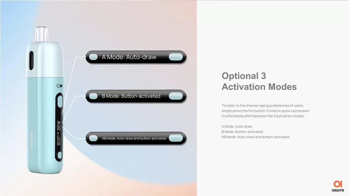 • 自動氣動啟動: 不需按鍵,吸氣即啟動,簡單直覺。