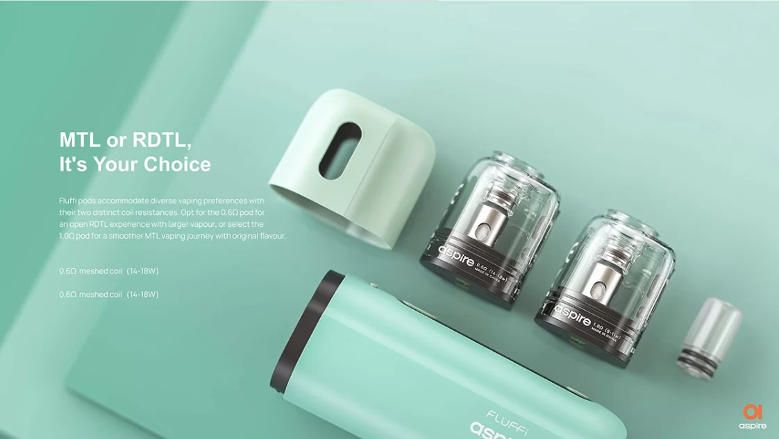Fluffi POD 是 Aspire 推出的輕便型智慧小煙,內建 1500mAh 大容量電池與 3.5ml 可替換式煙彈,支援 0.6Ω 與 1.0Ω 網狀線圈選項,適合追求簡單操作與優質口感的用戶。
