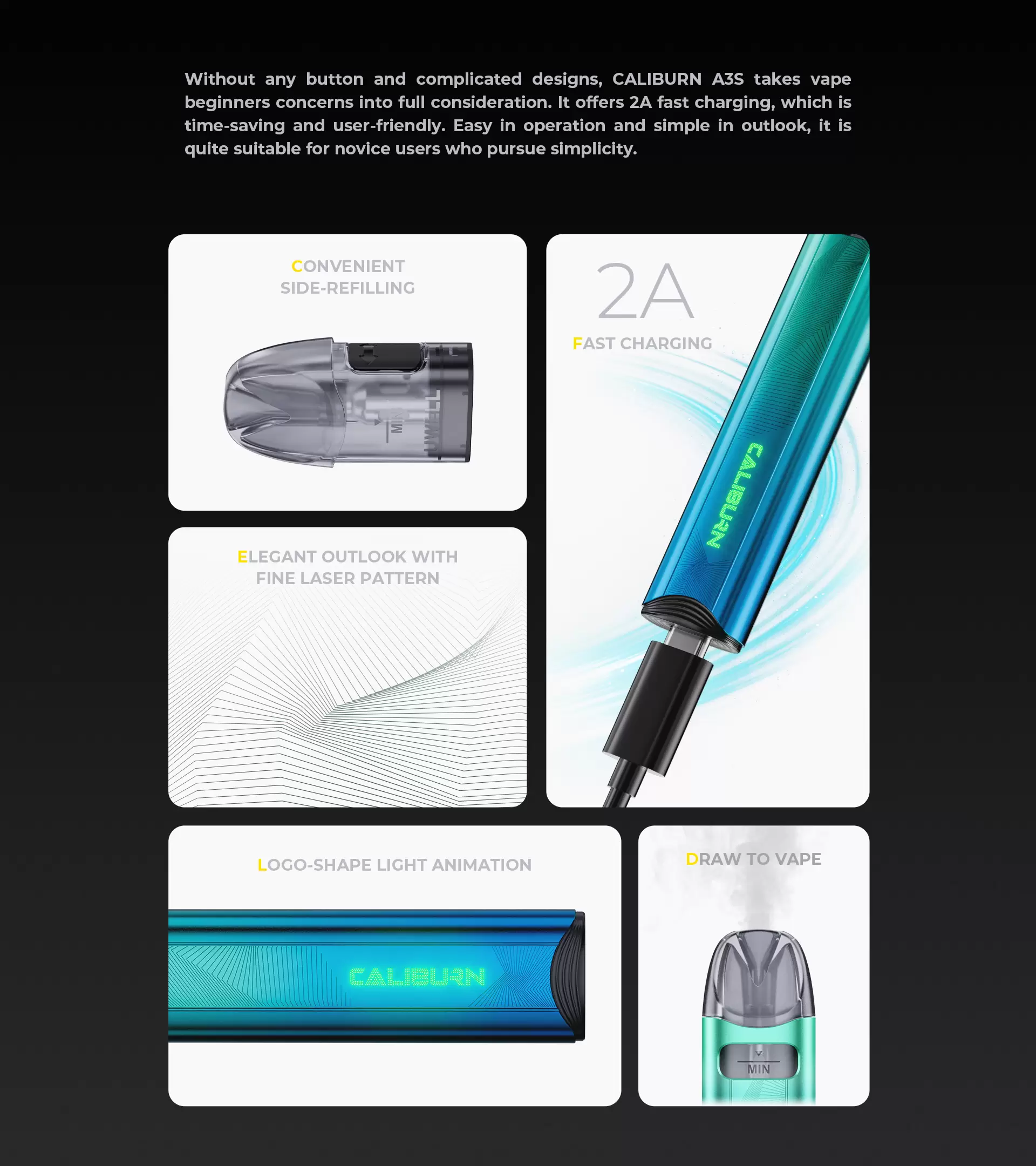 想要一款能夠帶來極致享受的電子煙嗎?不再猶豫!UWELL CALIBURN A3s 電子煙主機將完美滿足您的需求!